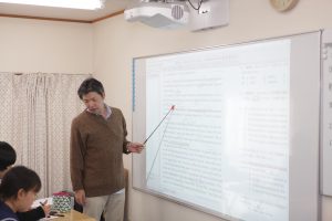 プロジェクターやパソコンなどのICT機器(デジタル)を使って、目で見て覚え、